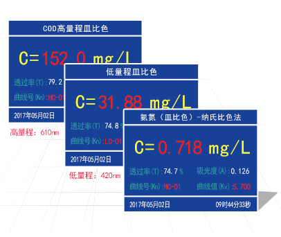 同時測定氨氮、COD高量程、COD低量程水樣;