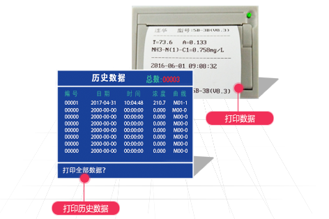 儀器內置打印機,可打印當前數據和所有存儲的歷史數據;